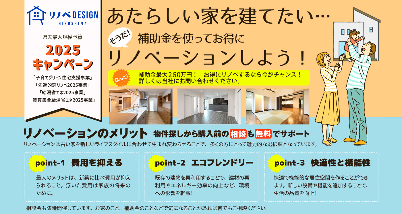 福山市でリフォームの施工会社をお探しなら、リノベDESIGN広島へご依頼ください。お問い合わせやご相談は代表自らお受けし、丁寧にヒアリングを行ったうえで高品質で快適な住まいづくりをご提案いたします。細かなものから大型リフォームまで対応が可能です。